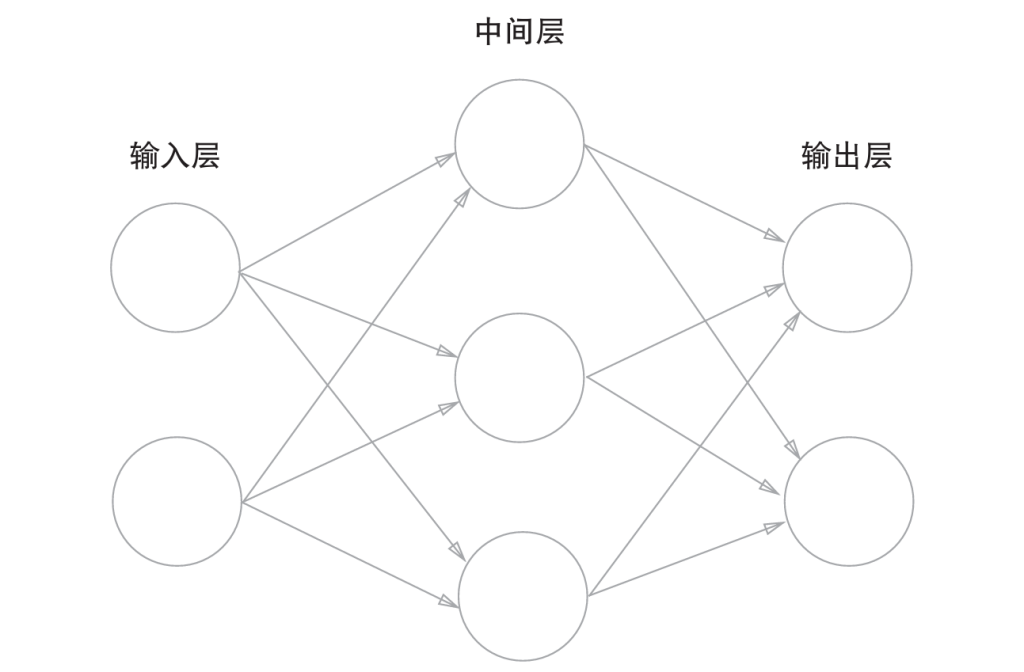 输入层 ---- 隐藏层(中间层) ---- 输出层