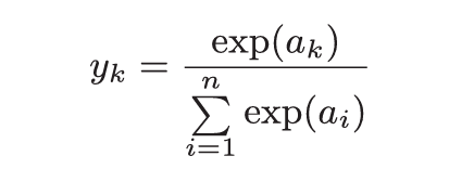可以观察到, yk的和为1, 我们可以把softmax的输出解释为概率, 所以一般用于分类模型中, 一般而言, 神经网络只把输出值最大的神经元对应的类别作为识别结果. 且exp为递增函数, 故在进行推理阶段时, softmax函数可以省略.